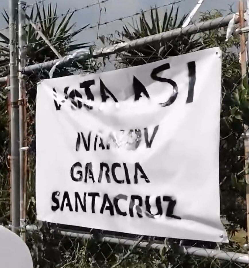 García Santacruz, quien aspiraba a ser candidato de MORENA por la comunidad de Tepehitec, fue denunciado en redes sociales tras ser captadas lonas propagandísticas de la campaña Sánchez García escritas en el reverso con el nombre del aspirante a candidato de comunidad.
