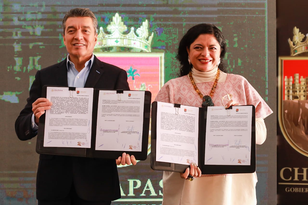 Como parte de esta gira, realizada el 20 de febrero, la encargada de la política cultural del país firmó un convenio de colaboración con el gobernador de Chiapas, Rutilio Escandón Cadenas, el cual se enfoca en los circuitos culturales y en impulsar la cultura comunitaria, entre otros.